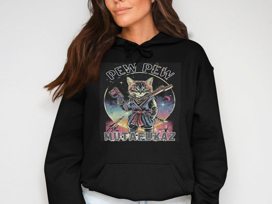 Cat Ninja Samurai T-Shirt, Pew Pew MUTAFUKAZ Graphic Tee, Cosmic Kitty Warrior, Funny Cat Lover Gift, Unisex Apparel