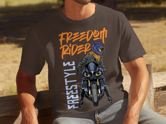 Freedom Rider Graphic T-Shirt, Freestyle Motorcycle Art Tee, Stylish Biker Apparel, Cool Motorbike Design Top, Trendy Riding Shirt