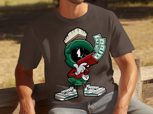 Funny Alien Money T-Shirt, Unique Cartoon Character Tee, Cool Graphic Shirt for Men and Women, Trendy Casual Outfit, Streetwear Style