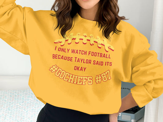 Football Fan Tee, I Only Watch Football Because Taylor Said Its Okay, Go Chiefs 87, Funny Football Shirt