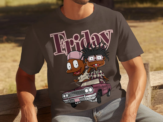 Friday Cartoon T-Shirt, Funny Character Tee, Unique Graphic Design Top, Cool Animated Print Tee, Retro Style Shirt, Casual Wear