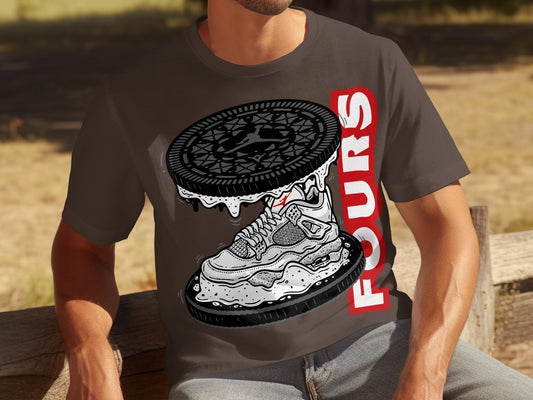 Basketball Sneaker Sandwich, Oreo Cookie Design, Unique Food Art, Stylish T-Shirt Graphic, Retro Sneaker Lovers, Fun Casual Wear