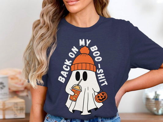 Back On My Boo Shit Ghost T-Shirt, Funny Halloween Graphic Tee, Spooky Season Top, Cute Ghost Shirt, Halloween Party Outfit