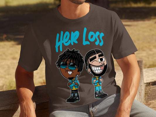 Her Loss Graphic T-Shirt, Cartoon Characters Tee, Hip Hop Inspired Design, Stylish Streetwear, Fun Gift Idea, Trendy Casual Wear