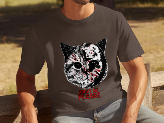 Halloween Cat T-Shirt, Unique Adopt Me Cat Design Tee, Creepy Halloween Fashion, Spooky Cat Lovers Gift, Funny Halloween Animal Shirt