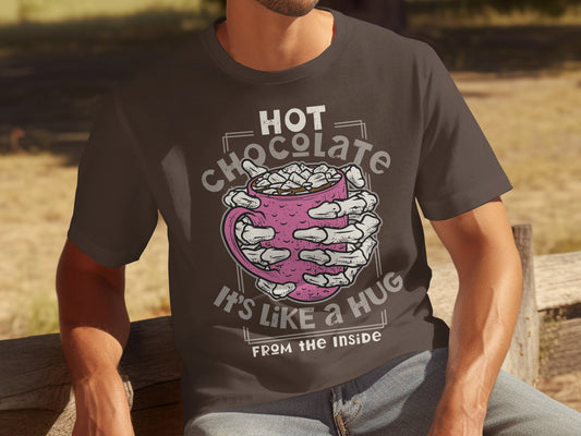 Hot Chocolate It's Like a Hug From the Inside, Funny Coffee Skeleton Hand Tee, Cozy Winter Hot Drink Lover Shirt