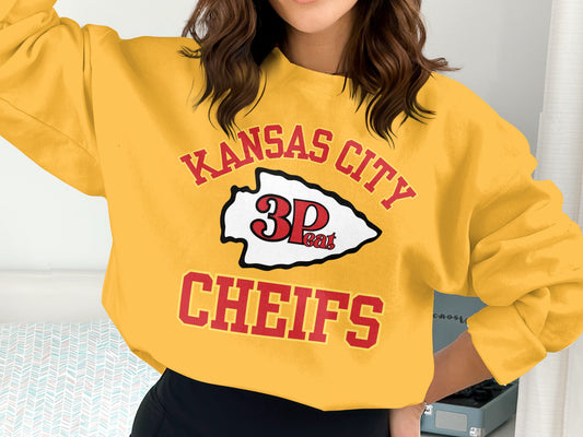 Kansas City Chiefs 3Peat T-Shirt, Kansas City Football Fan Gear, Sports Team Apparel, Championship Celebration Tee
