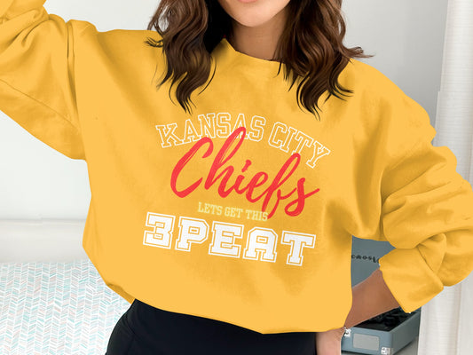 Kansas City Chiefs Let's Get This 3Peat Fan T-Shirt, Sports Team T-Shirt, Perfect Gift for Chiefs Fans, Trendy Chiefs Apparel