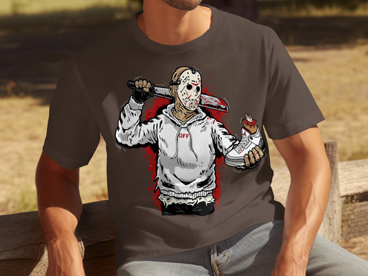 Jason Horror Movie Icon T-Shirt, Graphic Slasher Design, Scary Killer Illustration Tee, Horror Fan Gift, Unique Halloween Apparel