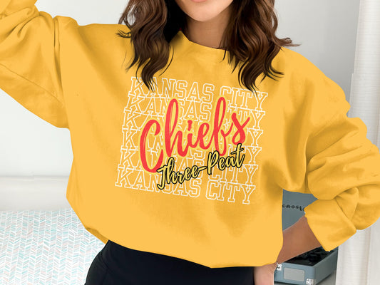 Kansas City Chiefs Three Peat T-Shirt, Football Fan Tee, Kansas City Pride, Sports Enthusiast Shirt, Champion Tribute Apparel
