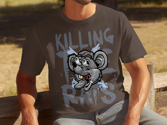 Killing Rats Graphic Tee, Bold Cartoon Rat Design T-Shirt, Funny Animal Artwork Shirt, Unique Streetwear Graphic Tee