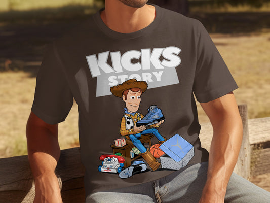 Kicks Story T-shirt, Cartoon T-shirt, Fun Graphic Tee, Trendy Design, Casual Wear, Unisex T-shirt, Cool Illustration Tee