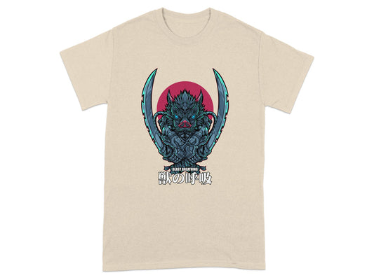 Beast Breathing Graphic T-Shirt, Unique Anime Art Tee, Cool Samurai Warrior Print Shirt, Japanese Style Design, Trendy Clothing