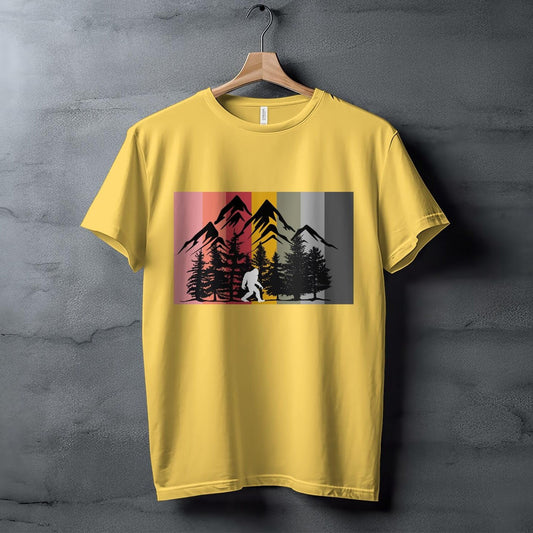 Bigfoot Retro Forest T-Shirt, Vintage Sasquatch Graphic Tee, Retro Mountains and Trees Design, Big Foot Lover Gift, Mythical Creature Shirt