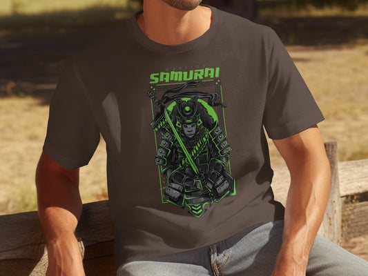 Samurai Warrior Cat T-Shirt, Cyberpunk Feline Graphic Tee, Unique Artistic Design T-Shirt, Geek Culture Clothing, Cat Lover Gift