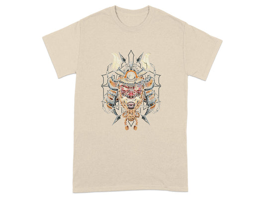 Samurai Warrior Mask Art T-Shirt, Intricate Japanese Samurai Design Tee, Unique Graphic Shirt, Cool Samurai Helmet T-Shirt