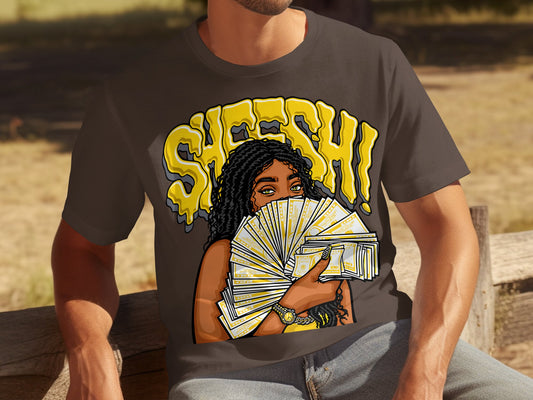 Sheesh Cartoon Money Rich Graphic Tee, Stylish Sheesh Graphic Shirt, Trendy Rich Money Art T-Shirt, Fun Sheesh Tee for Gift