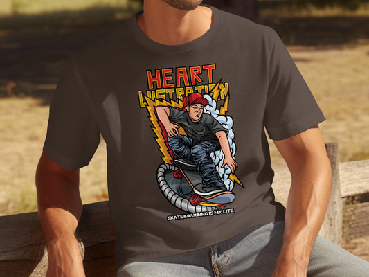 Skateboarding Is My Life Graphic Tee, Cool Skateboarder Illustration Shirt, Trendy Skateboard Graphic T-Shirt, Streetwear