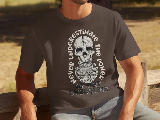 Skull Design T-Shirt, Never Underestimate The Power Of Hot Chocolate, Cool Graphic Tee, Unique Gift Idea, Funny Coffee Lover Shirt