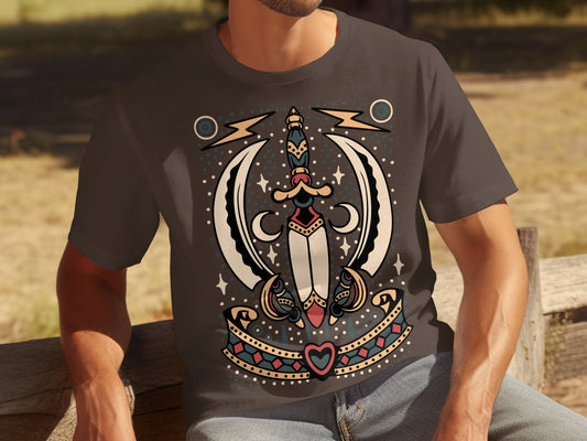 Unique Tattoo Style Art T-shirt, Cool and Trendy Design Tee, Artistic Graphic Print Shirt, Vintage Tattoo Inspired T-shirt, Edgy Streetwear