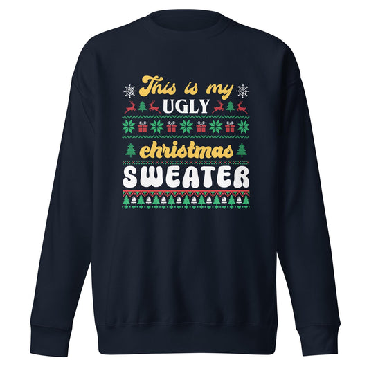 Ugly Christmas Sweater, Unisex Premium Sweatshirt, Funny Holiday Wear, Festive Apparel, Unique Ugly Sweater Design