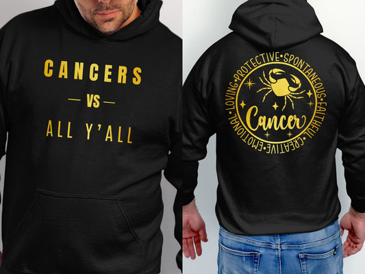 Cancers Vs All Y'all Motivational T-Shirt or Hoodie, Horoscope. Zodiac, Star Sign, Unique Birthday Gift, Gift for him, Gift for her