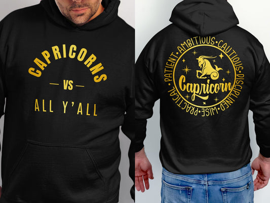 Capricorns VS All Y'all T-Shirt or Hoodie, Funny, Zodiac, Astrology, Horoscope, Enthusiast, Unique Birthday Gift, Gift for him, Gift for her