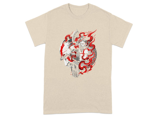 Viking Warrior Art T-Shirt, Mythical Norse Battle Design Tee, Nordic Legends Graphic Shirt, Fantasy Viking Illustration Apparel