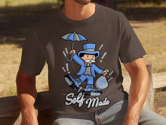 Vintage Retro Style Self Made Character T-Shirt, Unique Rags to Riches Design Tee, Motivational Graphic T-Shirt, Entrepreneur Shirt