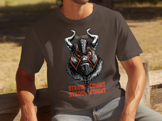 Viking Warrior Japanese Style T-Shirt, Strong Knight Graphic Tee, Retro Viking Print, Medieval Nordic Design, Cool Viking Apparel