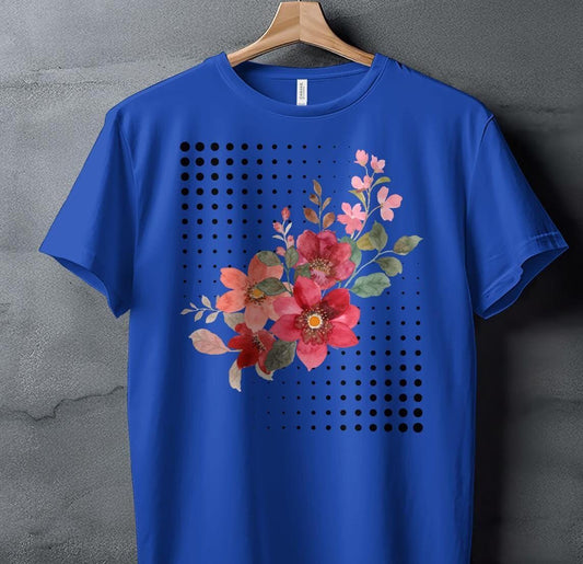 Watercolor Floral Design T-Shirt, Artistic Flower Pattern Tee, Casual Trendy Outfit, Graphic Cute Blossom Shirt, Women's Fashionable Top