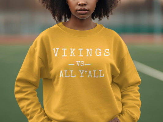 Vikings vs All Y'all Graphic Tee, Funny Statement Shirt, Bold Lettering T-Shirt, Unique Humor Tee, Casual Wear, Unisex Top