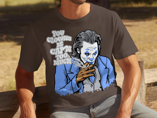 You Clowns Be Capping Too Much Funny Smoking Clown Graphic Tee, Unique Artistic Clown Design T-Shirt, Trendy Clown Humor Shirt