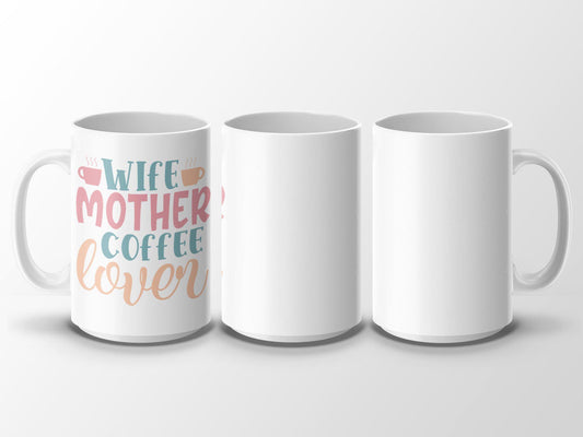 Wife Mother Coffee Lover Mug, Funny Coffee Mug for Women, Gift for Mom Wife, Cute Quote Mug, Unique Coffee Lover Gift