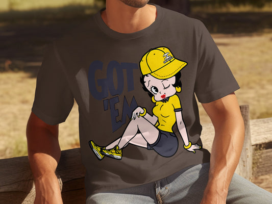 Classic Cartoon Wink Got 'Em Graphic T-Shirt, Fun Yellow Hat and Sneakers Design, Casual and Trendy Tee, Eye-Catching Print