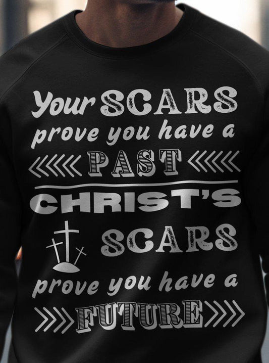 Christian Inspirational Quote Tee, Your Scars Prove Past Christs Scars Prove Future, Faith Based T-Shirt, Religious Message Shirt