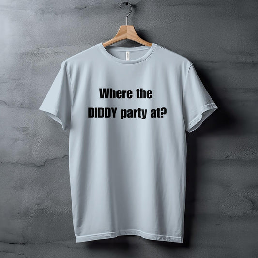 Diddy, Diddy Party t-shirt, Humorous Graphic Tee, Where the Diddy Party At Shirt, Trendy Casual Wear, Fun Statement T-Shirt