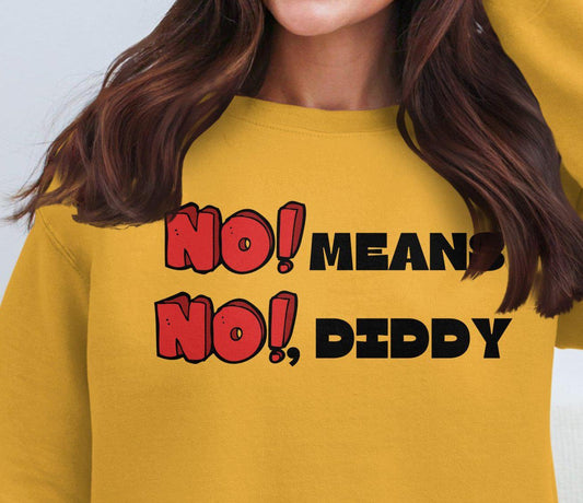 Funny No Means No Diddy T-Shirt, Humorous Graphic Tee, No Means No Shirt Unique Slogan, Casual Wear, Gift Idea, Unisex T-Shirt