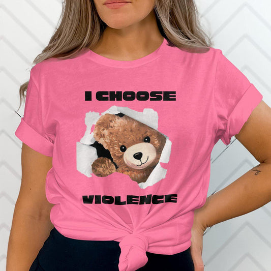 Cute Teddy Bear T-Shirt, Funny Breaking Through Print, I Choose Violence Humor Tee, Unique Graphic Shirt, Gift for Friends