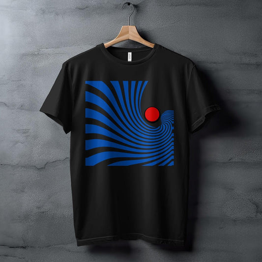 Retro Wave T-Shirt, Abstract Blue Lines with Red Circle Design Tee, Unique Geometric Graphic Top, Modern Art Inspired Shirt