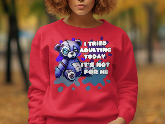 Funny Teddy Bear T-Shirt, I Tried Adulting Today It's Not For Me, Cute and Quirky Saying, Perfect for Casual Wear, Humorous Tee