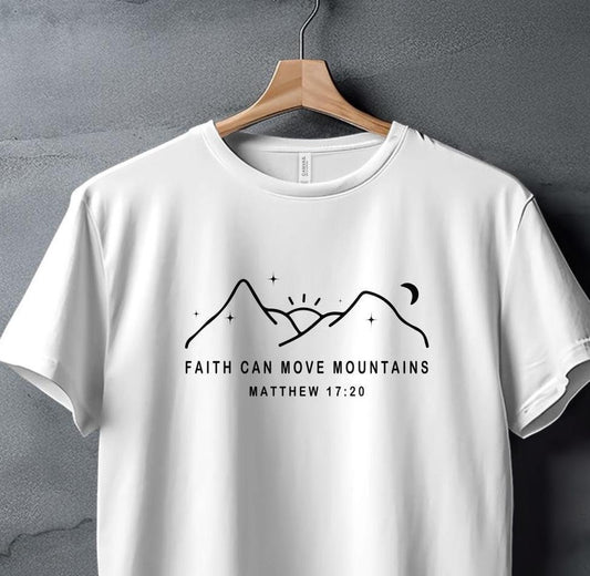 Inspirational Christian T-Shirt Faith Can Move Mountains Matthew 1720 Religious Scripture Tee
