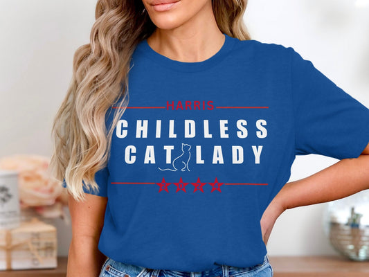 Harris Childless Cat Lady 2024 Graphic T-Shirt, Funny Political T-Shirt, Cat Lover, 2024 Election Tee, Cat Lady Gift, Vote, Gift for her