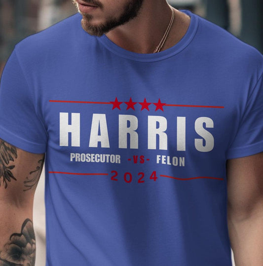 HARRIS 2024 Prosecutor vs Felon T-Shirt, Election Campaign Tee, Political Statement Shirt, Humor Graphic Tee, Presidential Election 2024