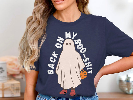 Back On My Boo Shit Ghost T-Shirt, Funny Halloween Graphic Tee, Spooky Season Top, Cute Ghost Shirt, Halloween Party Outfit