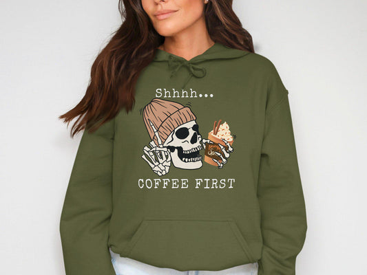 Funny Skeleton Drinking Pumpkin Spice Latte T-Shirt, Halloween Graphic Tee for Coffee Lovers, Fall Season Unisex Shirt, Cute Skeleton