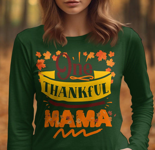 One Thankful Mama T-Shirt, Autumn Fall Leaves Graphic Tee, Thanksgiving Family Shirt, Gift for Mom, Fall Season Apparel