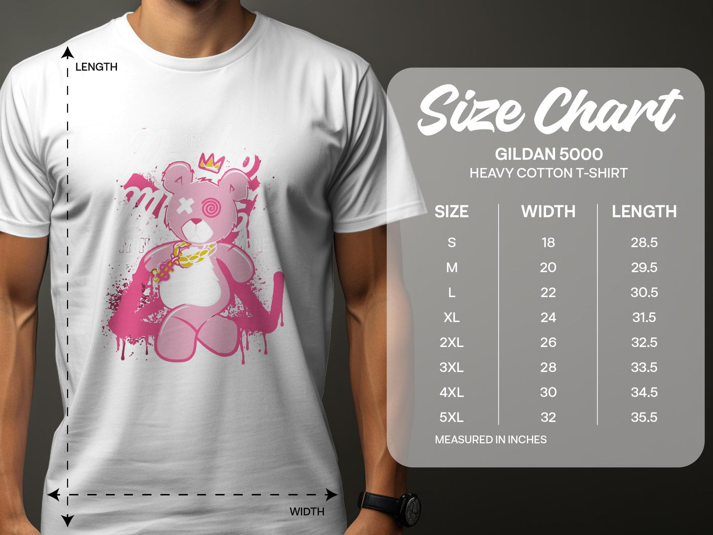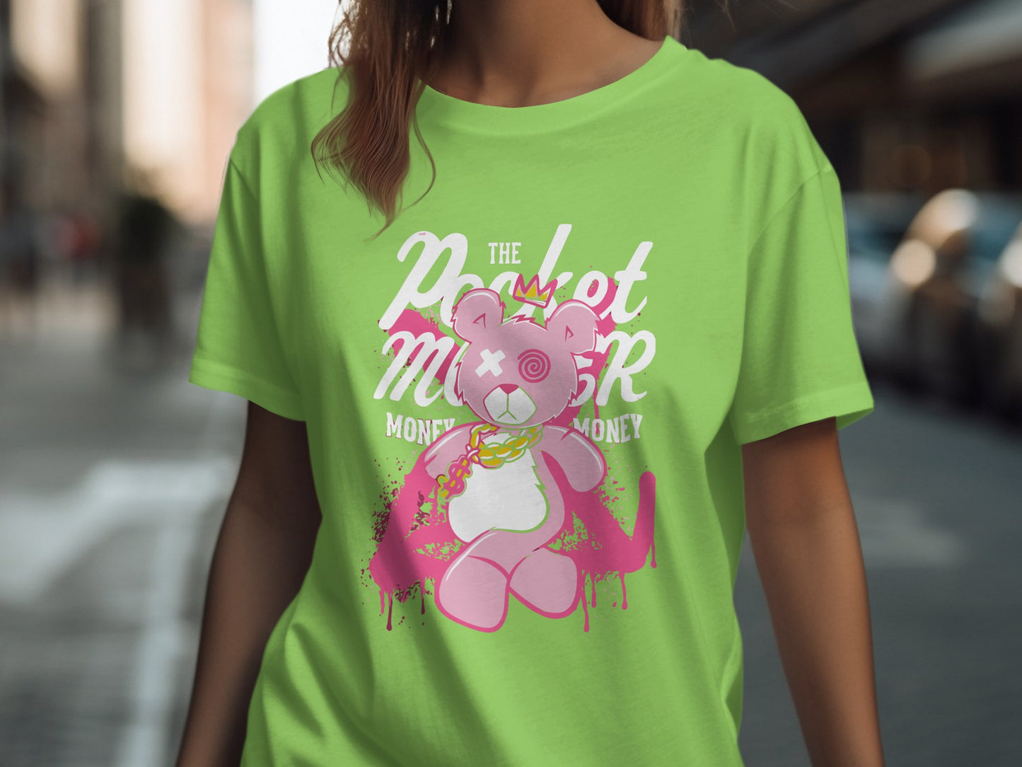 This trendy T-shirt features a cute pink teddy bear with a crown and chain graphic, perfect for those who love hip hop and cartoon designs. The unique bear art makes it a cool gift for friends and family. Great for casual wear or gifting to bear and hip hop enthusiasts.