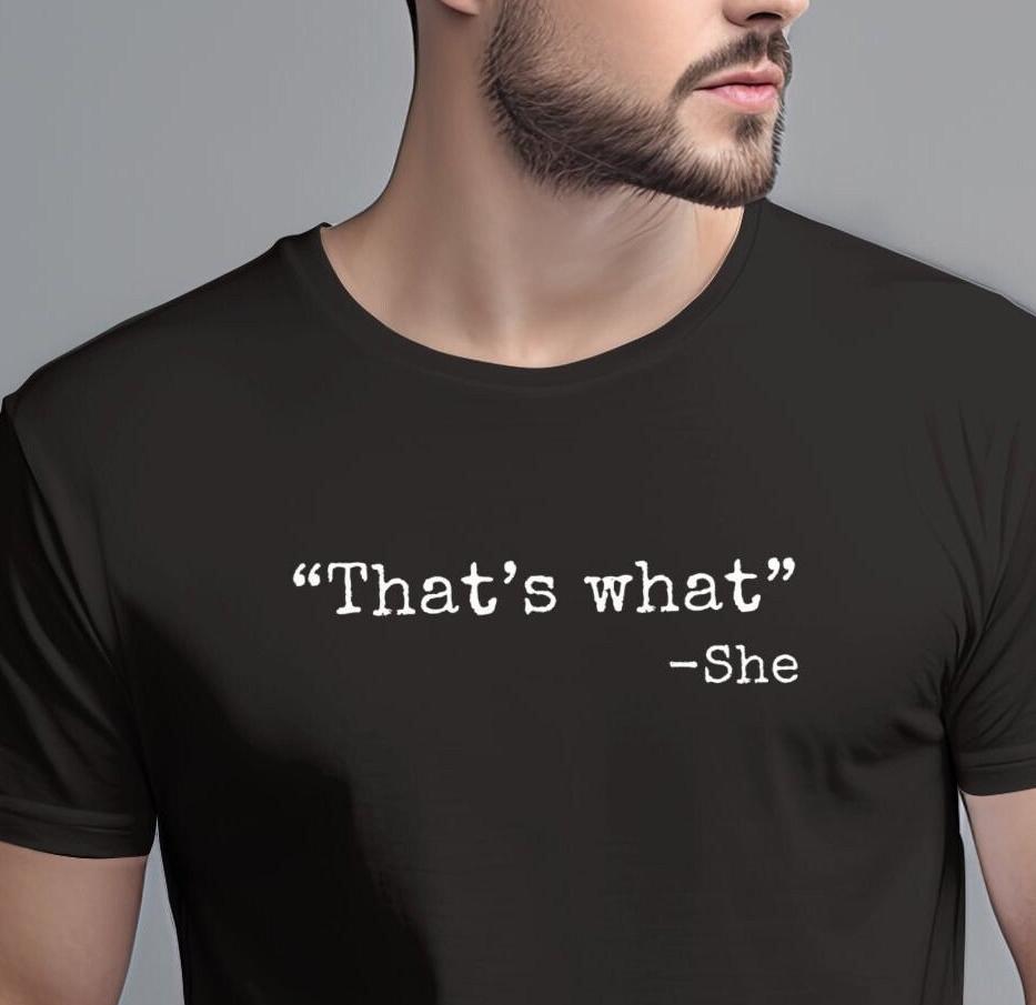 Celebrate humor with our "That's What" T-Shirt, perfect for making a statement. This relaxed-fit tee features a playful quote that resonates with many. Ideal for casual outings, parties, or lounging at home. Made from high-quality fabric, it ensures comfort throughout the day. A great gift for friends, family, or yourself who appreciate witty phrases. Pair it with jeans or shorts for a trendy look. Available in various sizes and colors.